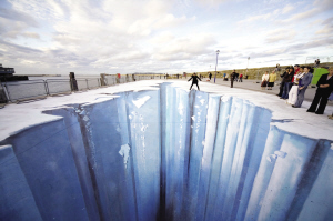 “奔騰的水、青青的草……”僅用一般的外墻涂料,卻能讓畫在地板、墻壁上的瀑布栩栩如生。站在“瀑布”下,你甚至會覺得不斷有水滴濺在自己身上。昨天下午,世界最大街頭3D立體畫 吉尼斯紀錄創(chuàng)造者,來自德國的Edgar Muller(梅拿)在解放碑大都會廣場上宣布,本月18日,他為山城創(chuàng)作的大型3D立體畫——武隆喀斯特地貌瀑布將在該廣場中庭展出。屆時,市民將親身感受到頂尖3D立體畫帶來的視覺沖擊。