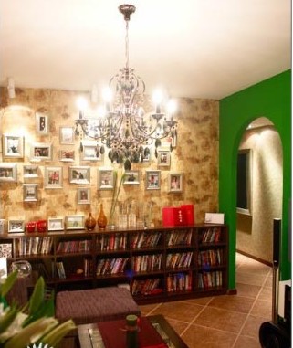客廳,一面墻設(shè)計成書柜,收柜做得比較低,上面可以放物品,這面墻做成了一面記憶墻,照片,裝飾畫,都可以掛在上面,親朋好友來了,還是一道不錯的風景線呢。