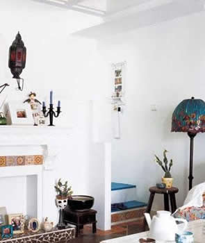 大膽設計的歐式壁爐,線條硬朗的地磚,小時候的木凳子,各處淘來的各色小品……