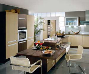 走過楊先生家開敞式的門廳就能看到相對(duì)而設(shè)的餐廳與廚房。餐廳的整體設(shè)計(jì)很有一種鄉(xiāng)村田園之感。家具采用純實(shí)木制造,造型既簡約又實(shí)用。