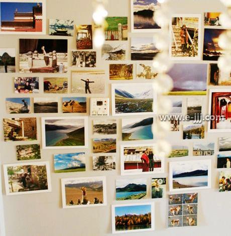 除了用畫(huà)框裝飾照片掛在墻上外,照片墻還可以演變?yōu)槭掷L照片墻。