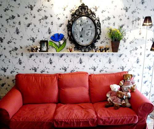 黑白是我為這個家挑選的主色調,紅色是點綴的一筆。比如這張沙發(fā)。