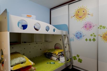 色彩艷麗、夸張可愛(ài)的彩繪板移門是小朋友的最愛(ài),家長(zhǎng)們常會(huì)給孩子房間運(yùn)用。