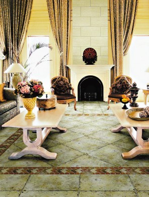 圖的設(shè)計(jì)是典型的復(fù)古風(fēng)格。在不經(jīng)意間流露出與生俱來(lái)的貴族氣質(zhì),是這類磚給人的第一視覺印象。復(fù)古磚十分講究拼貼的藝術(shù),對(duì)于線條、色彩的創(chuàng)意都很考究。這類瓷磚在平整的磚面用模具打造深淺、大小不同的小坑,小金坑分布自然再用特殊的磨砂工藝反表面的金屬釉磨掉后,保留小坑里的金屬釉,色澤飽和過度自然,持久耐磨。