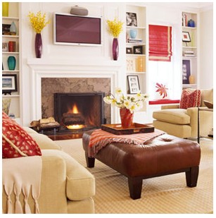 花大錢買些顏色中性,質量上乘的家具是很值得的。烙上你的印記:如果你喜歡鄉(xiāng)村風格,不妨選擇方格紋棉布窗簾和中國陶瓷作為裝飾。選擇線條流暢的家具,擺設輕松隨意,圖中的花紋圖案地毯在視覺上起了銜接的作用。