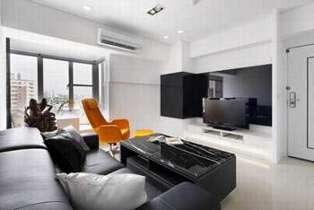 而設計師做的第一件事,就是打掉內(nèi)部隔間墻,保留兩房兩廳空間,放大的空間坪數(shù)奠定大器敞朗的簡約住家基石。依照屋主喜歡且設計師擅長的黑白意象,設計師利用烤漆玻璃、系統(tǒng)柜、拋光石英磚在色彩上做簡單的變化,主要是利用不同材質(zhì)的介面營造空間層次感,加大空間視感。